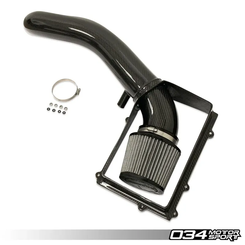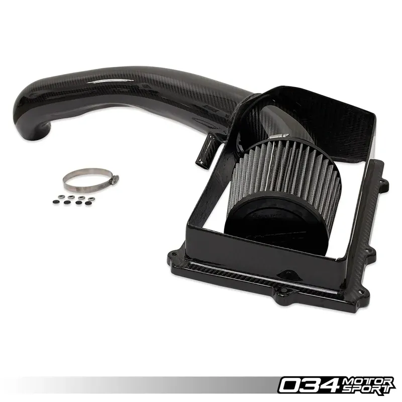 Инженерите на 034Motorsport положиха значителни усилия, за да разработят цялостно решение за всмукателната система за TT RS, което да носи предимства в мощността и въртящия момент спрямо добре проектираната фабрична кутия. Резултатът е тази красиво изработена карбонова всмукателна система.