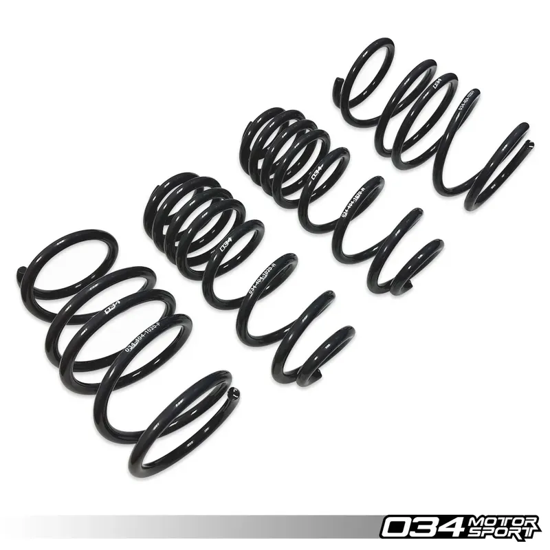 Тези пружини са проектирани вътрешно и тествани обстойно върху тестовия автомобил Audi A3 8P 3.2 VR6 на 034Motorsport преди пускането им в продажба, за да се гарантира, че осигуряват идеалната комбинация от производителност, комфорт и надеждност.