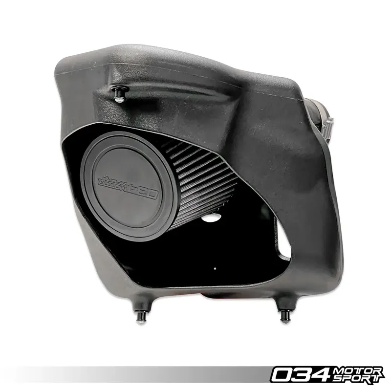 Много афтърмаркет комплекти използват прекалено голям филтър в корпус, който не може да побере неговия размер, като по този начин задушават филтъра и намаляват общия му поток. Това често се случва, когато продуктът е проектиран само за една променлива за сметка на други. 034Motorsport проведе обширни тестове и прецизира дизайна на интейка, за да позволи максимален въздушен поток около въздушния филтър, осигурявайки оптимален поток към и през филтъра.