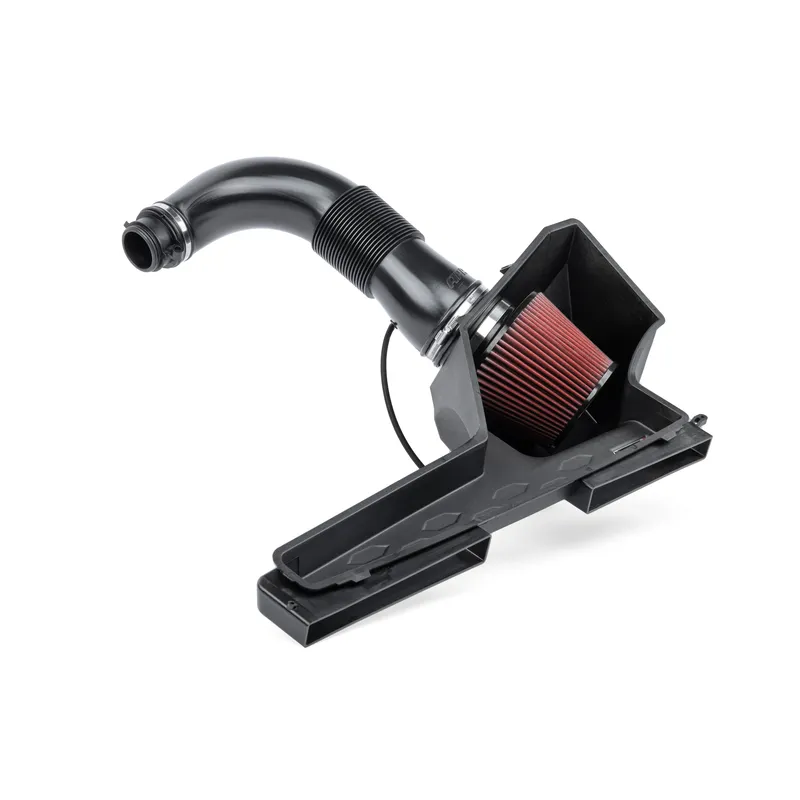 Филтърът се прикрепя към въздушната кутия и води директно към масивната 109-милиметрова входяща тръба на APR. Входящата тръба често се пренебрегва, но тя обикновено е една от най-рестриктивните части на системата. Инженерите на APR са подобрили това значително. Площта на напречното сечение на системата е с 99% по-голяма от фабричната при въздушната кутия! Тя се свързва с кутията само с една скоба, без нужда от силиконови съединения и адаптери. Това прави инсталацията лесна и придава на системата много изчистен и професионален вид.