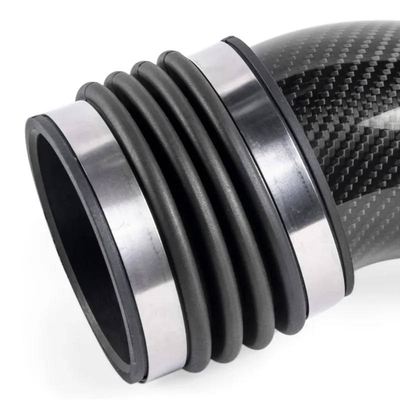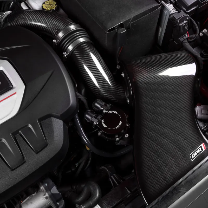Карбоновата входяща тръба за турбо на APR заменя задната фабрична пластмасова гофрирана тръба с атрактивен карбонов елемент, допълващ естетически издържания дизайн на всмукателната система на APR. Всмукателната система и входящият маркуч са свързани чрез необходима гъвкава връзка, за да се позволи адекватно движение на двигателя по време на работа, без да се поврежда интейка. Входящата тръба за турбо е напълно съвместима с всички фабрични турбокомпресори и Stage III турбо системата на APR.