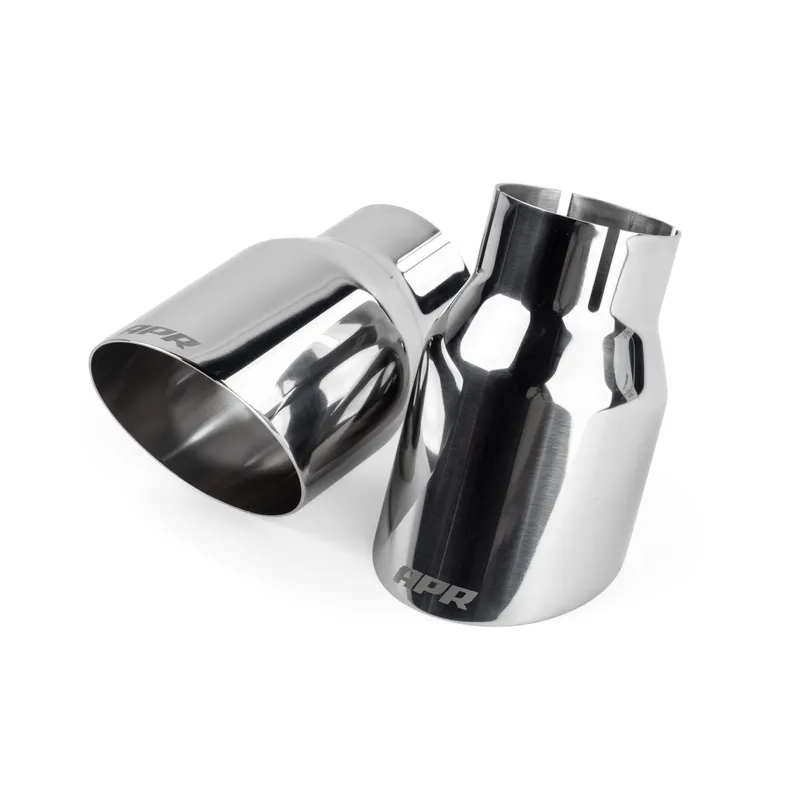 Полираните скосени 89 мм изпускателни накрайници надграждат задната част на автомобила драматично. Вдъхновените от моторните спортове накрайници прилягат добре във фабричната престилка, следвайки нейните извивки. Дискретно лого на APR е лазерно гравирано в горната част на всеки накрайник. Използват се скоби Torca AccuSeal от неръждаема стомана T304, които се монтират с лекота. Тъй като накрайниците са подвижни, те могат да бъдат заменени с всеки друг дизайн на APR по всяко време.
